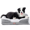 -Colores: Gris, marrón y blanco con celeste. -Largo:71 cm. -Ancho:55 cm. -Alto:15 cm. -Posee forro lavable. -Colchón ortopédico. -Espuma viscoelástica cuadrada con patrón.