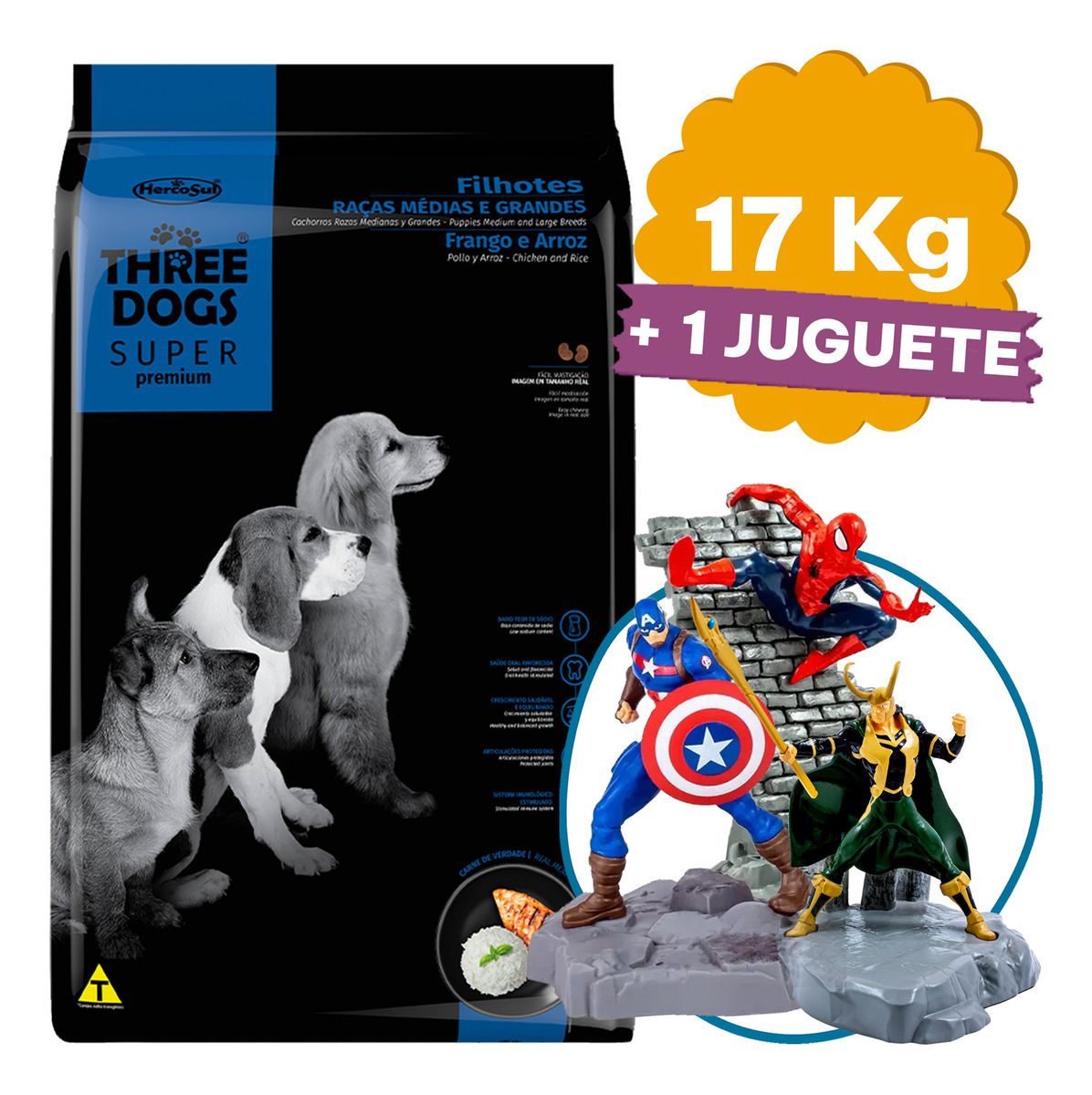 Comida Perro Cachorro Three Dogs 17 Kg + Regalo + Envío