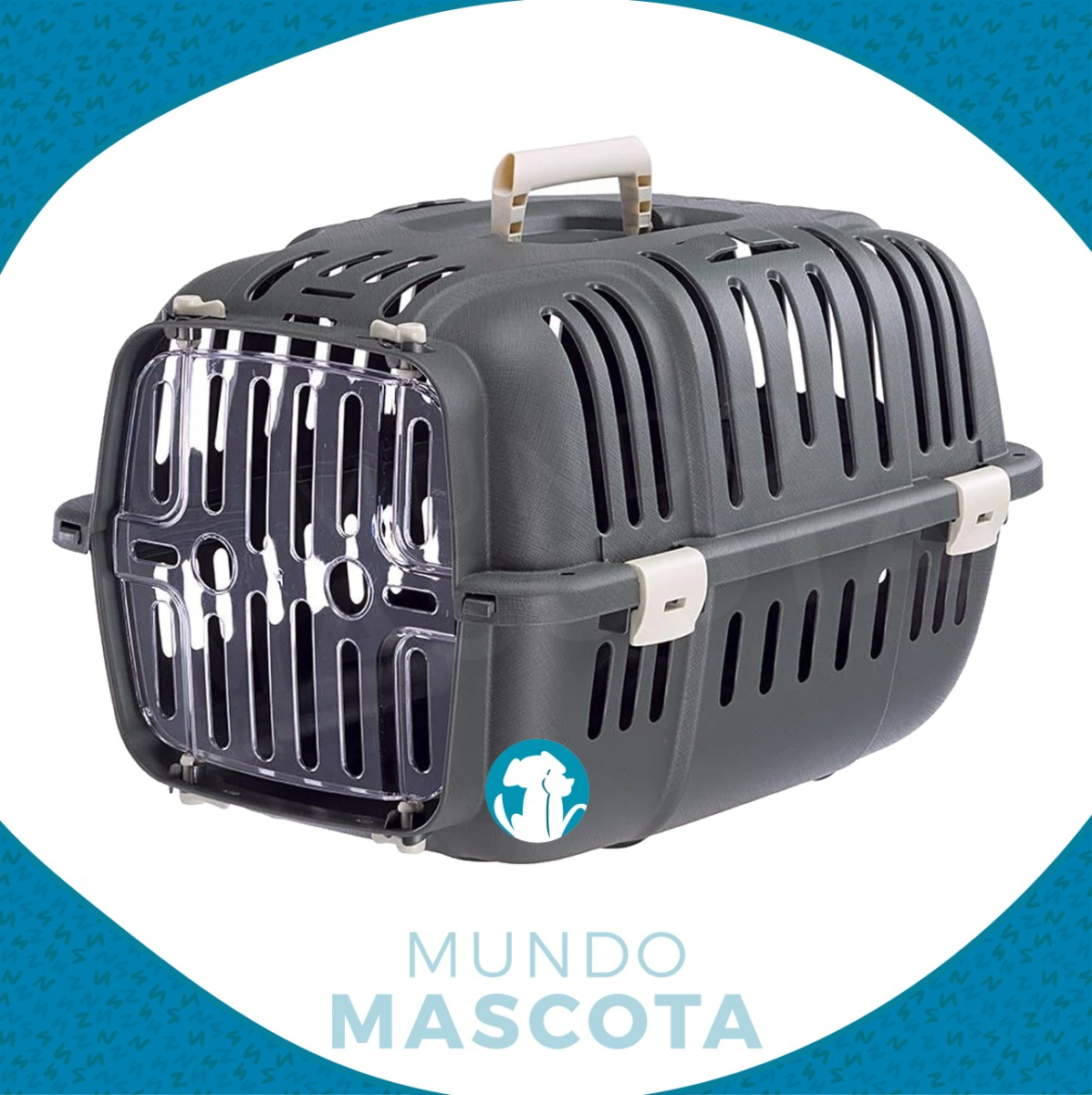 -Puerta transparente resistente a los golpes, que permite ver siempre al animal en el interior, dotada de aberturas de ventilación.